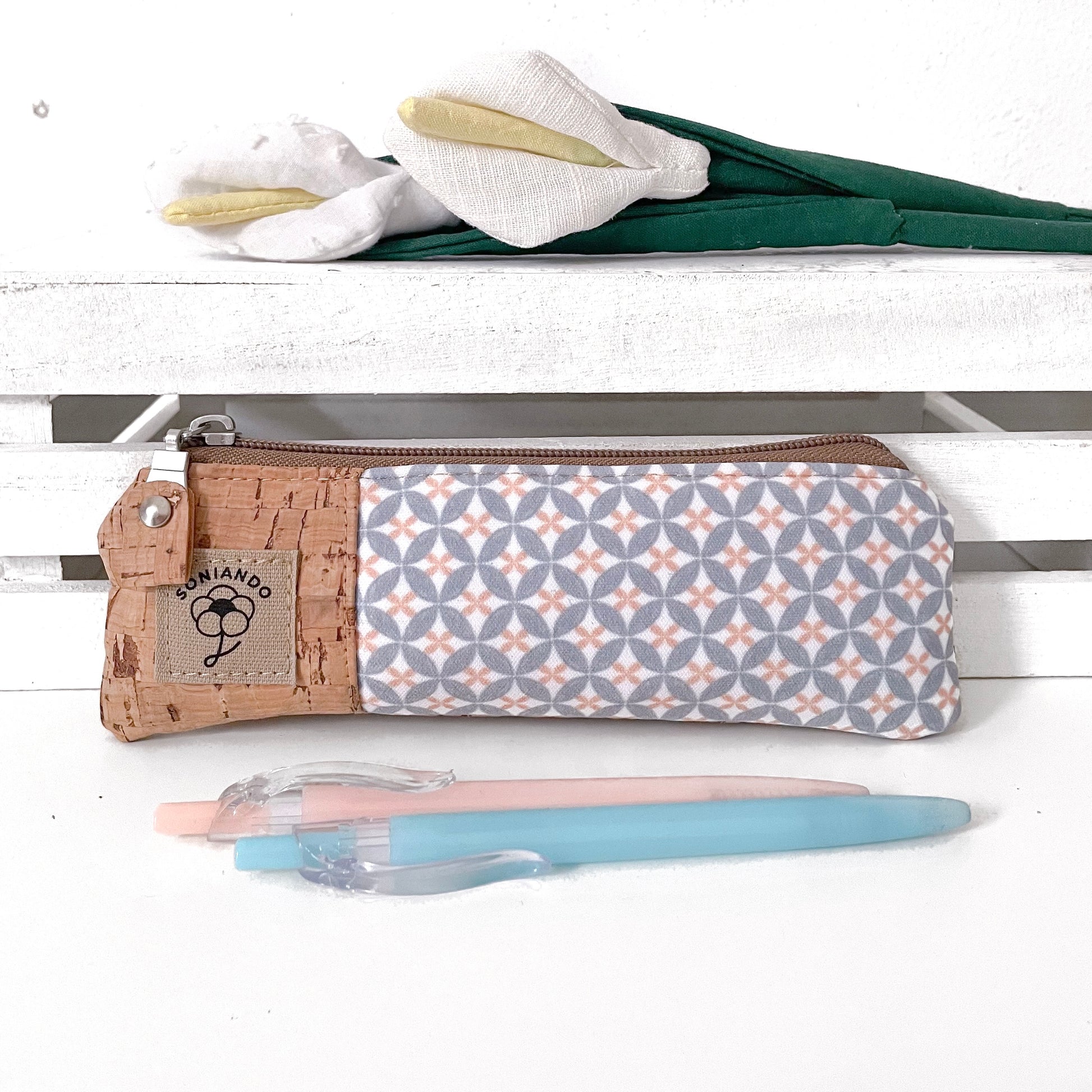 Questo originale astuccio da borsetta con chiusura a cerniera è piccolo e compatto, da portare sempre con se per tenere tutto in ordine e a portata di mano con il minimo ingombro. Può contenere cancelleria oppure può essere usata come piccola trousse per matite e cosmetici vari. Come tutti i miei prodotti è interamente realizzato a mano, in sughero naturale e tessuto idrorepellente. Foderato internamente con tessuto di conto è .