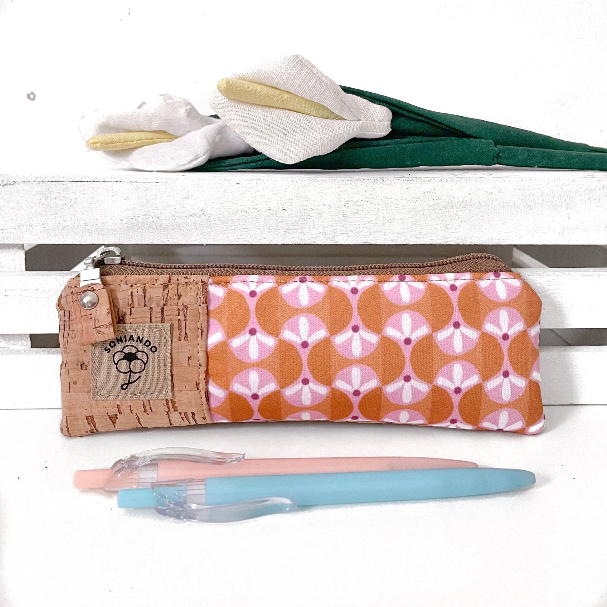 Questo originale astuccio da borsetta con chiusura a cerniera è piccolo e compatto, da portare sempre con se per tenere tutto in ordine e a portata di mano con il minimo ingombro. Può contenere cancelleria oppure può essere usata come piccola trousse per matite e cosmetici vari. Come tutti i miei prodotti è interamente realizzato a mano, in sughero naturale e tessuto idrorepellente. Foderato internamente con tessuto di conto è .