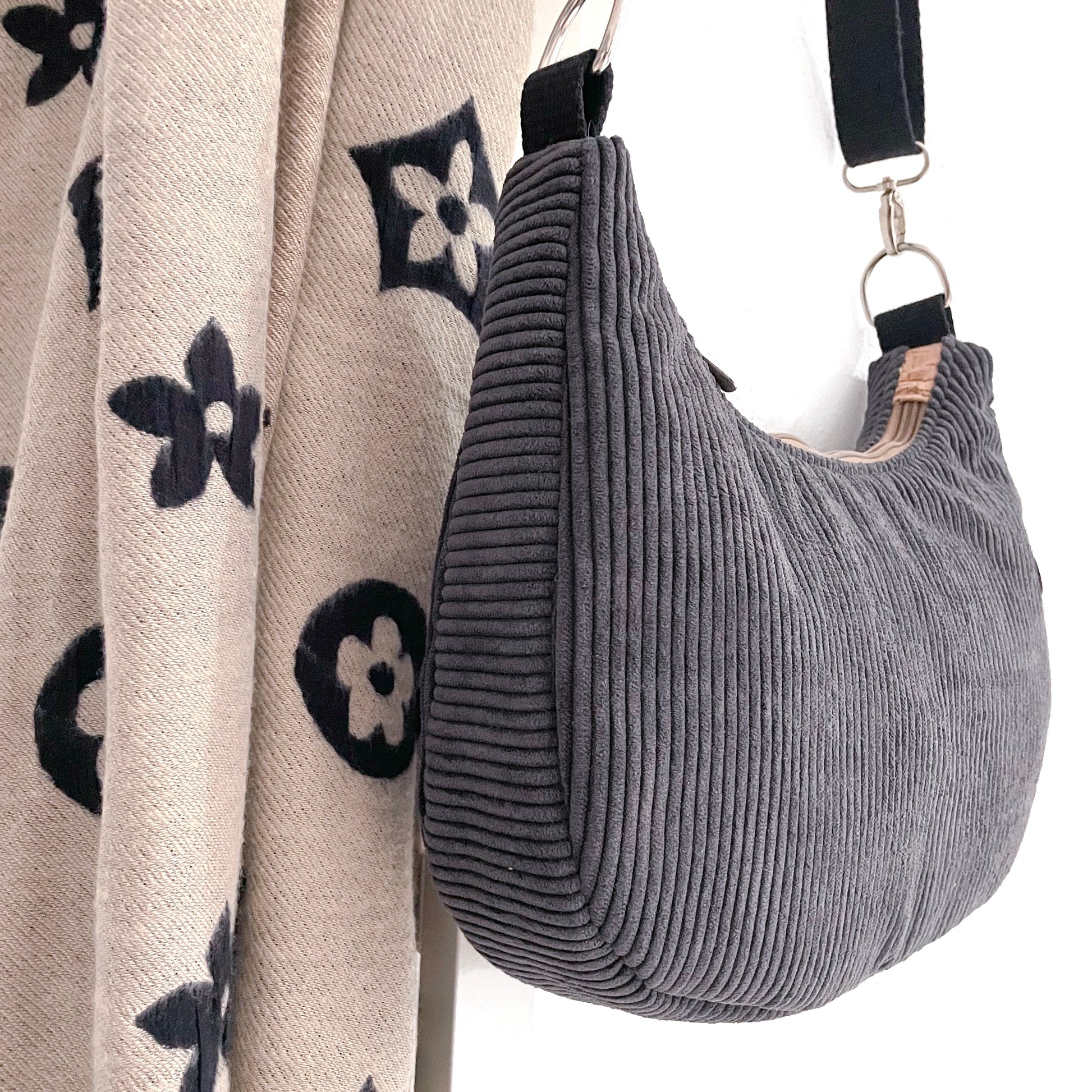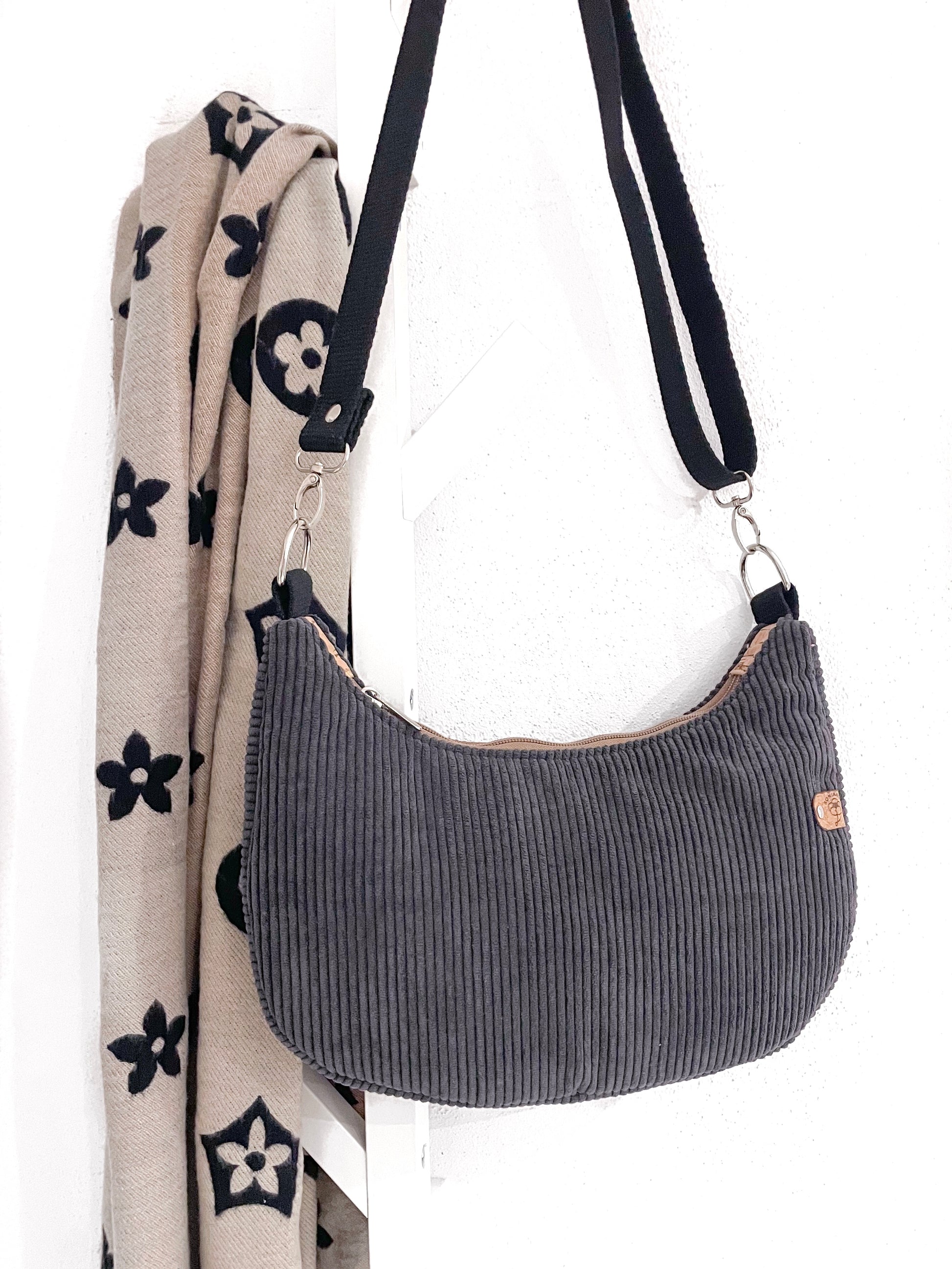 Borsa semplice in velluto con una taschina interna. interno, da portare a tracolla o a spalla. La tracolla è regolabile e si può staccare sganciando i moschettoni.