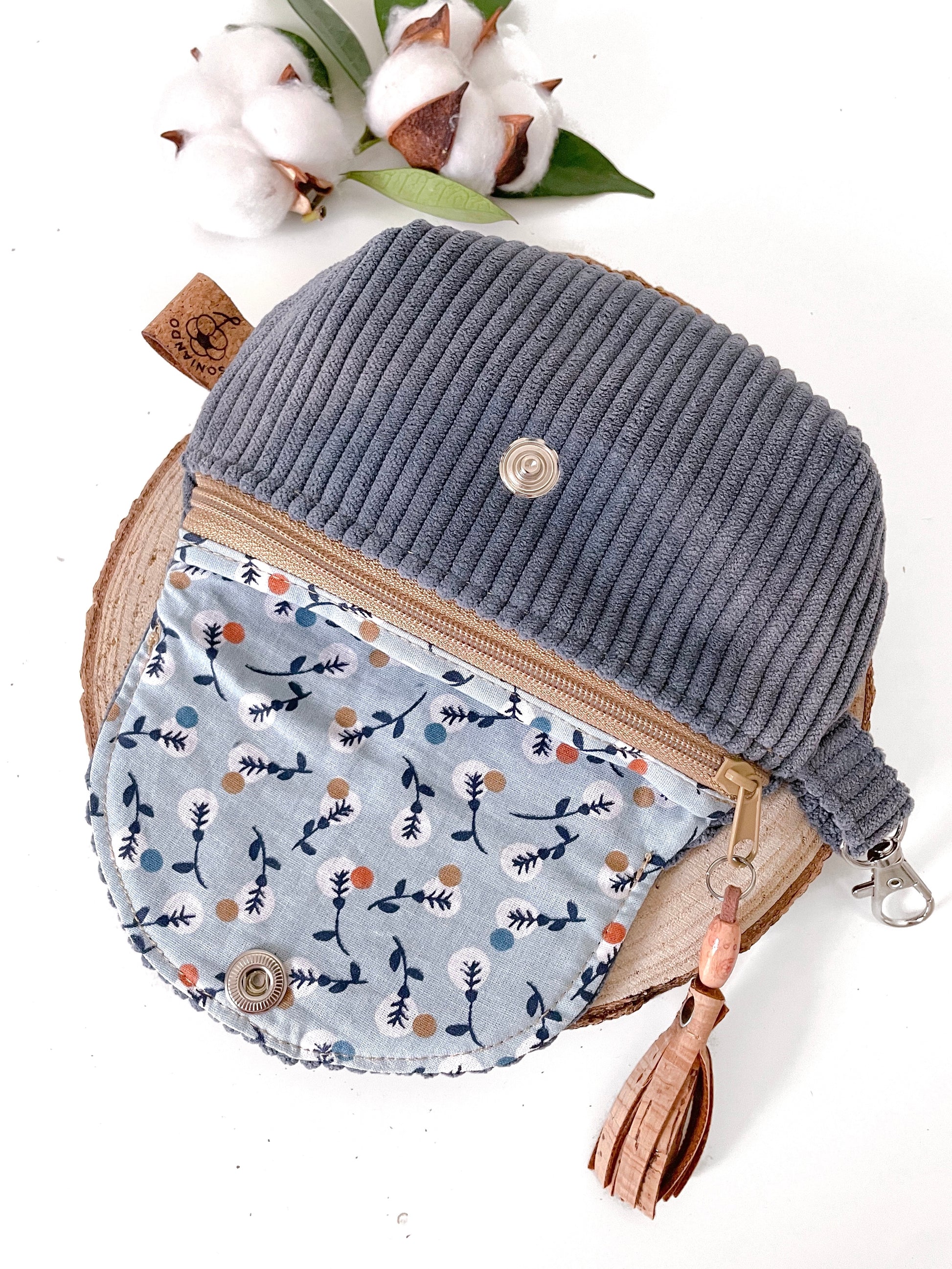 Borsellino portachiavi in velluto, fopera in cotone fantasia.