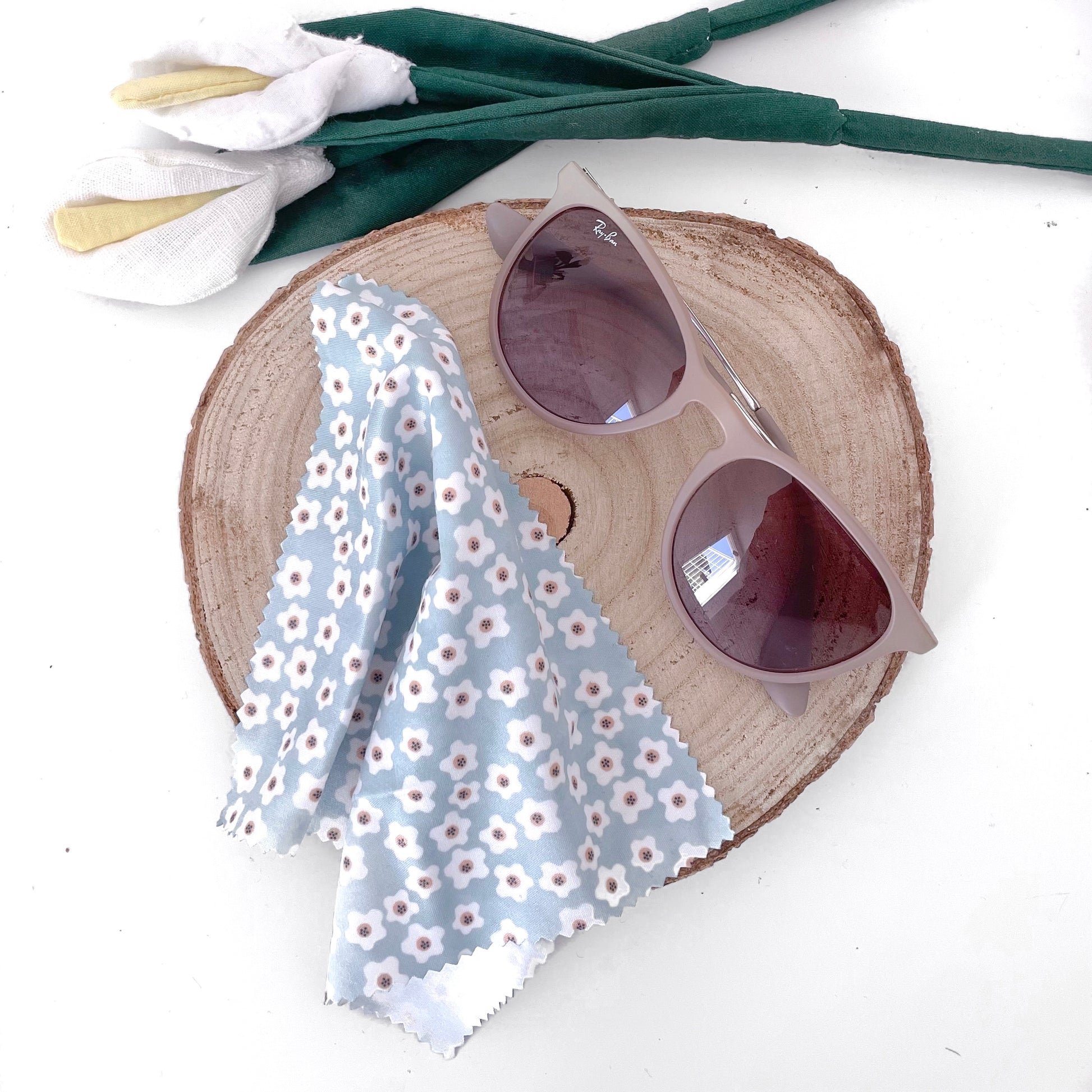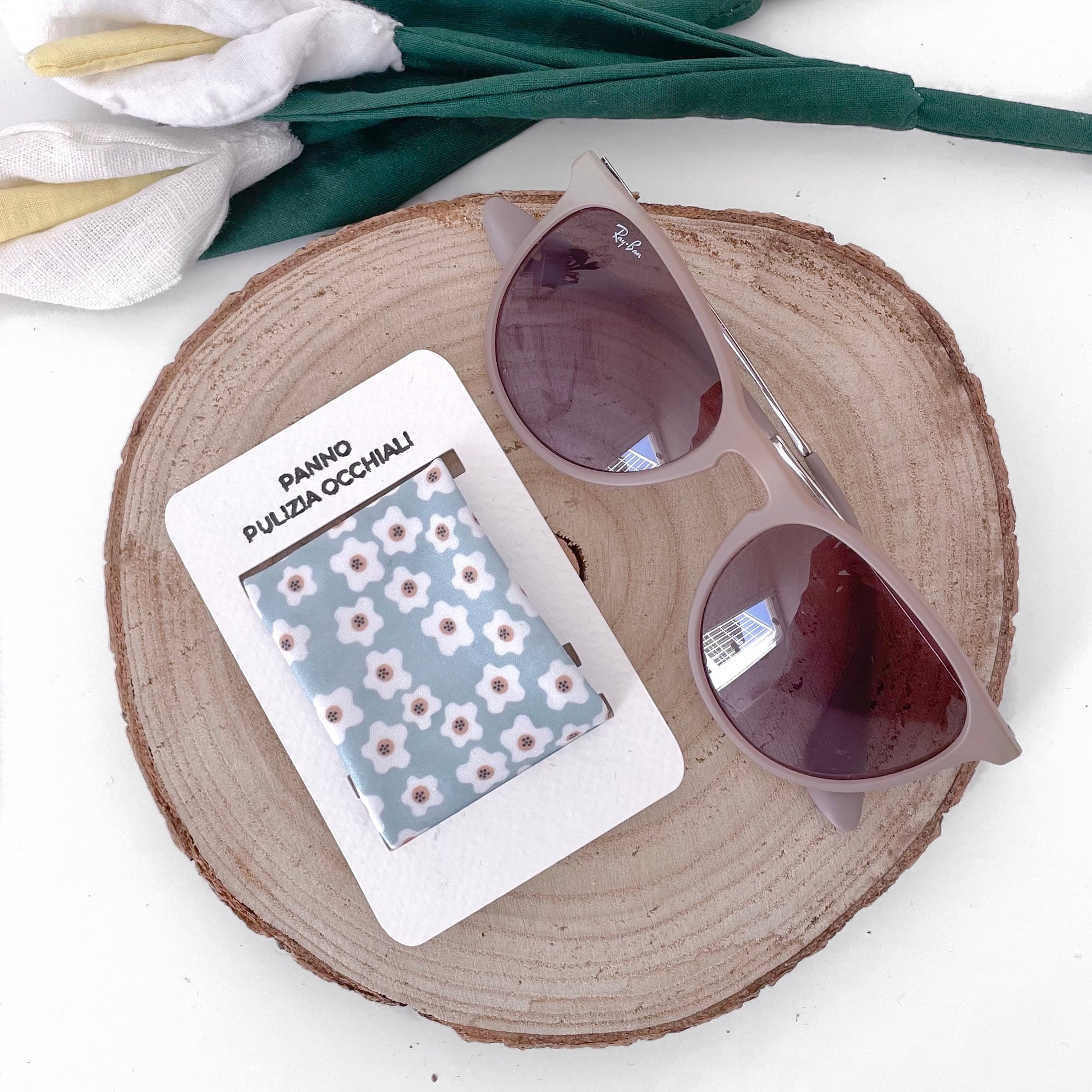 PANNO PULIZIA OCCHIALI FIORI AZZURRI