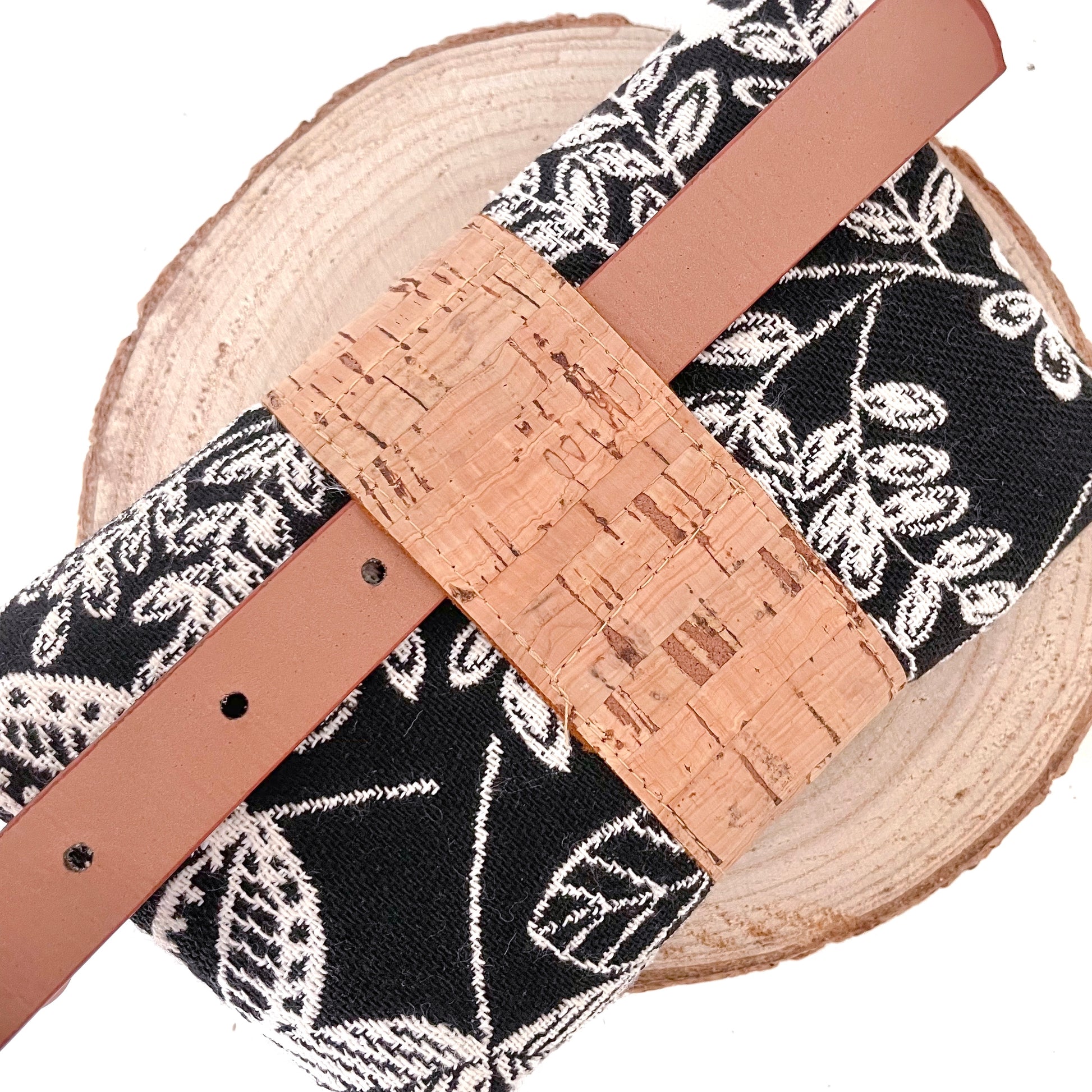 Realizzato in sughero naturale e tessuto jacquard.