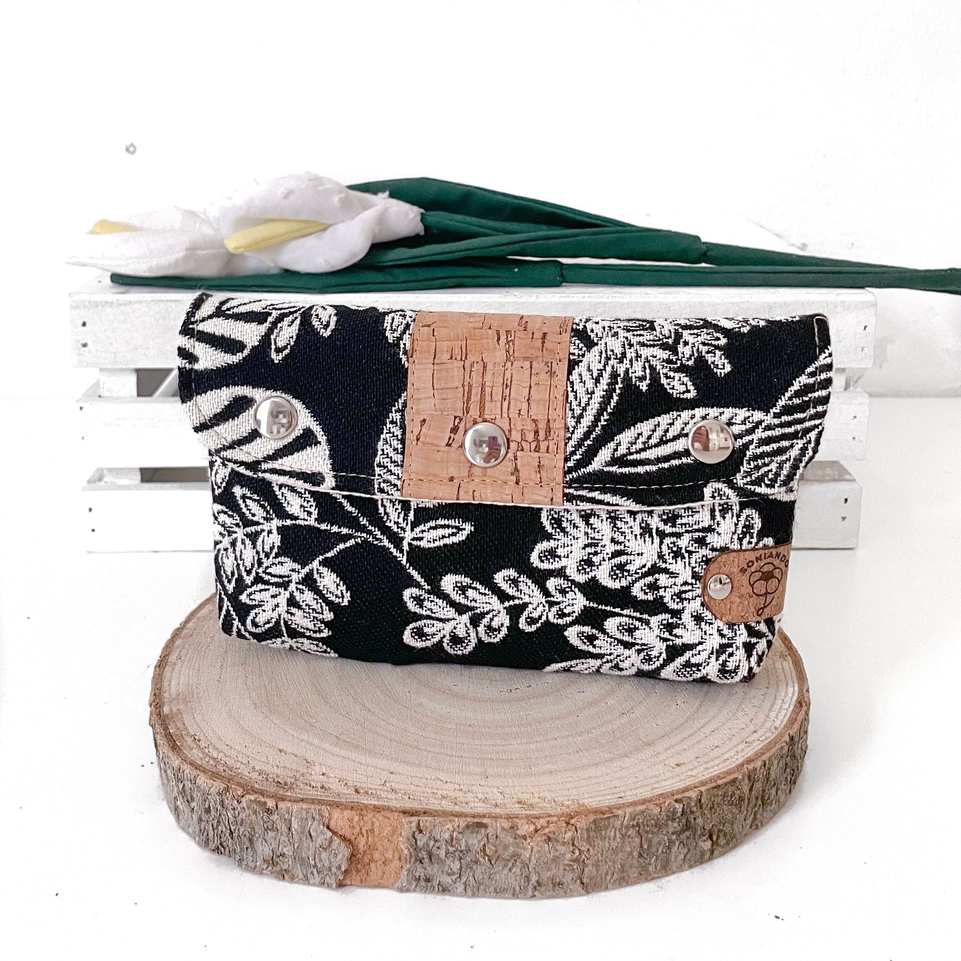 PORTAFOGLIO CINTURA NERO FOGLIE