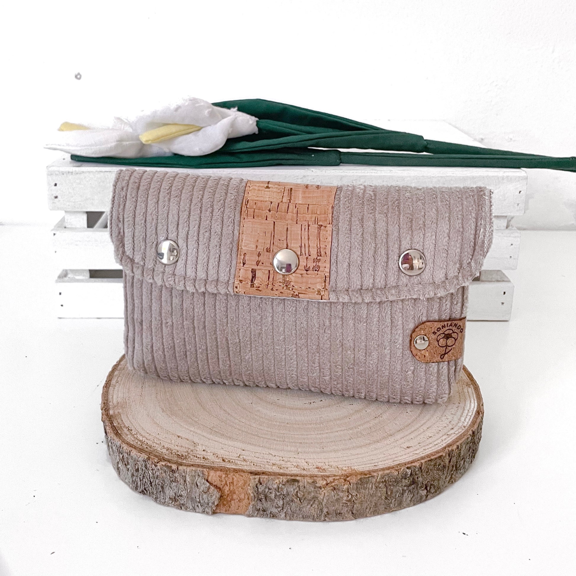 Realizzato in sughero naturale e velluto.