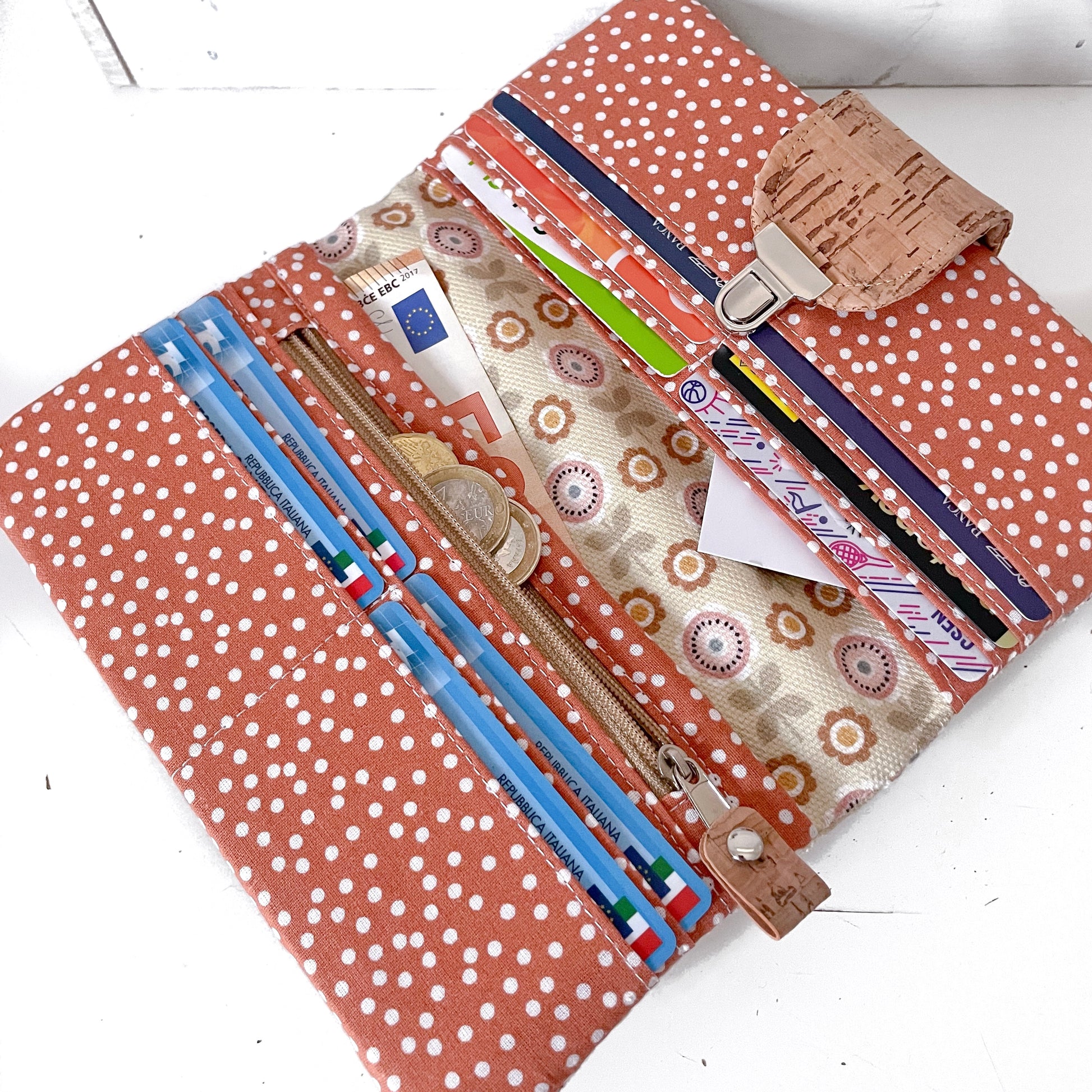 Tante tasche per le card, per le banconote ed i documenti. Una bella tasca grande con zip per le monete.