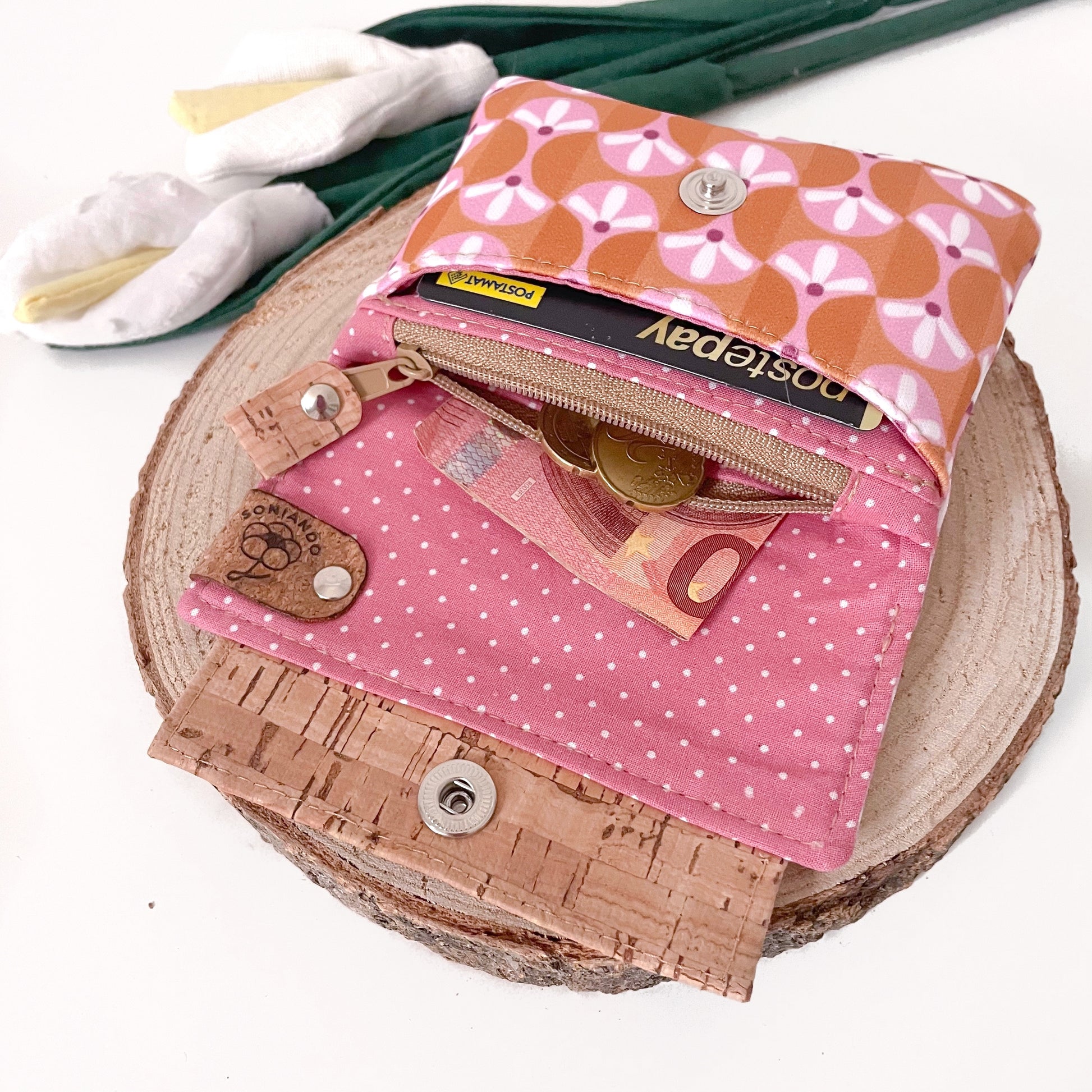 Composto da una tasca per cards (ne può contenere più di una), una tasca con zip per le monete e un ulteriore spazio per le banconote.