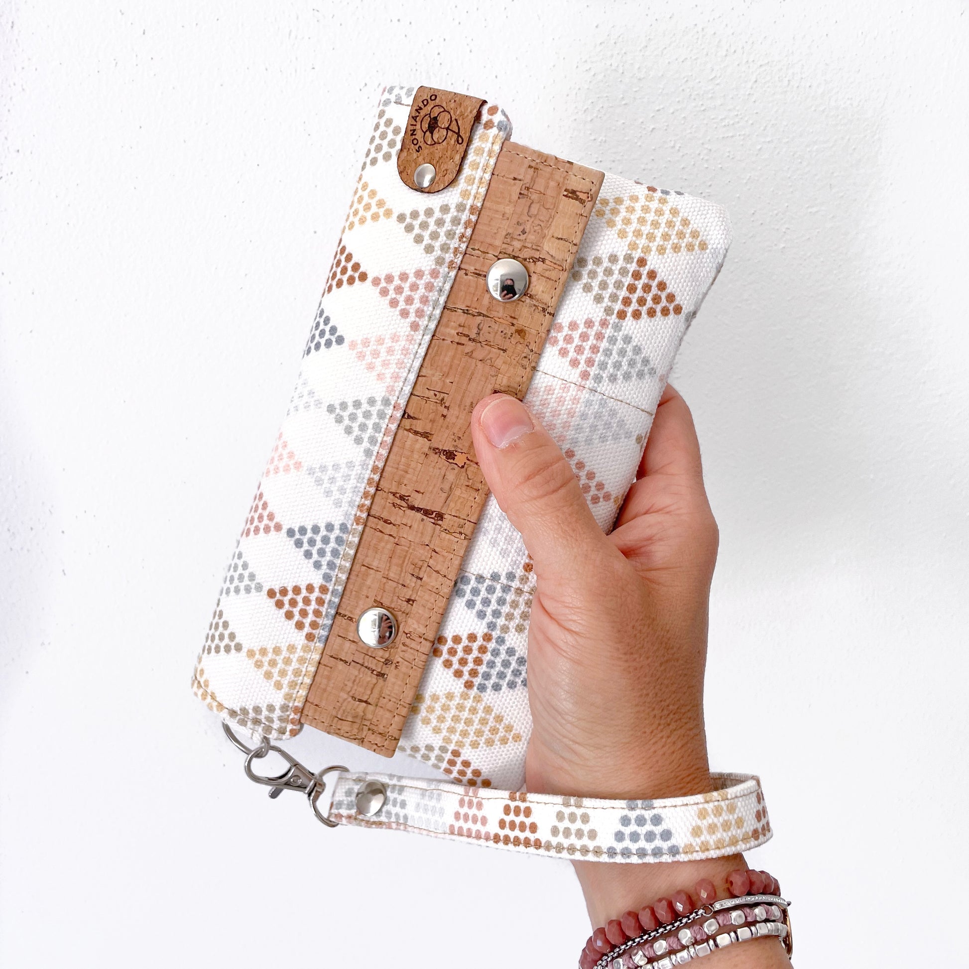Il portafoglio Eva è un portafoglio minimalista, comodissimo da portare al polso grazie al laccio con moschettone che si può staccare.