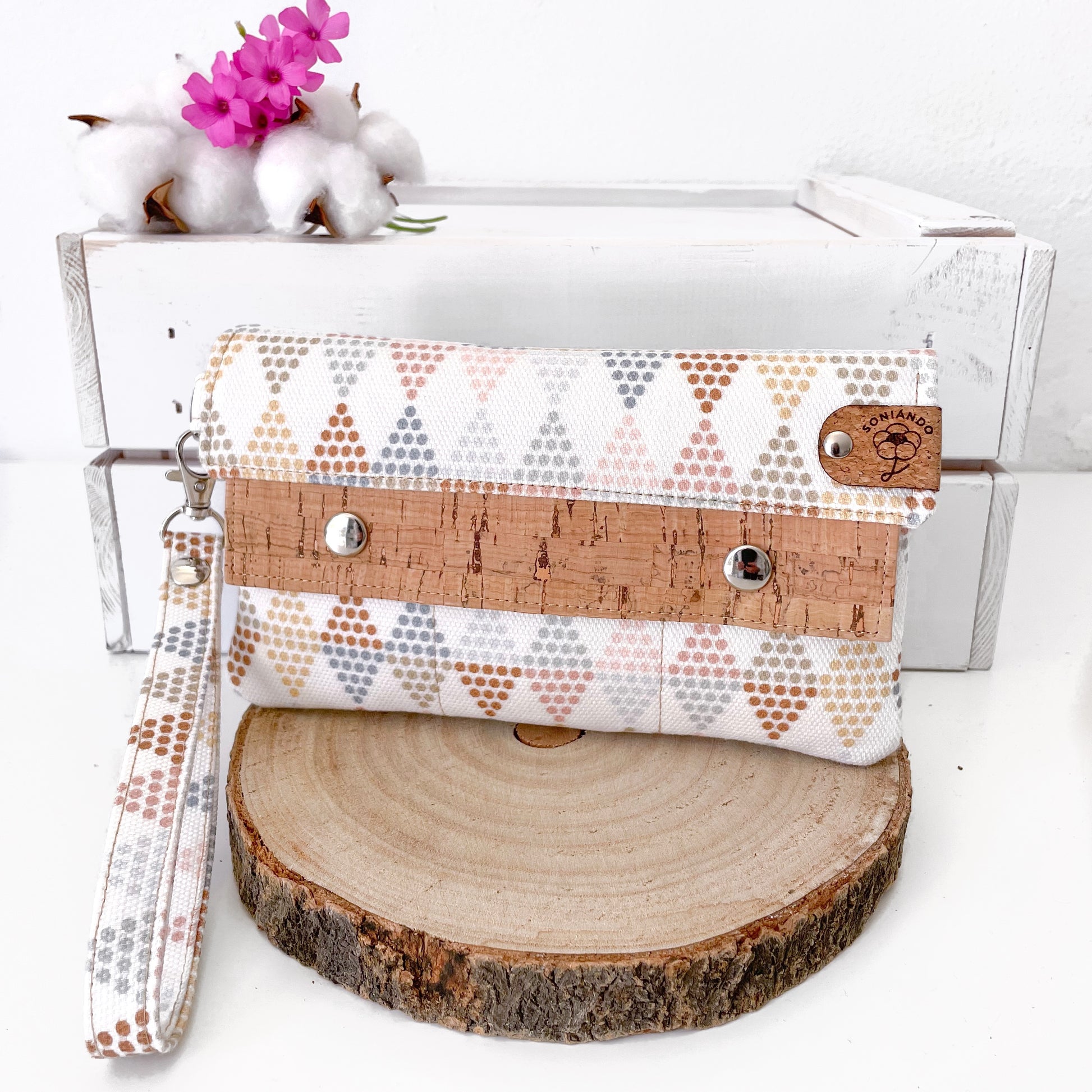 Realizzato in sughero naturale e tessuto pesante di 100% cotone certificato GOTS e OEKO-TEX.