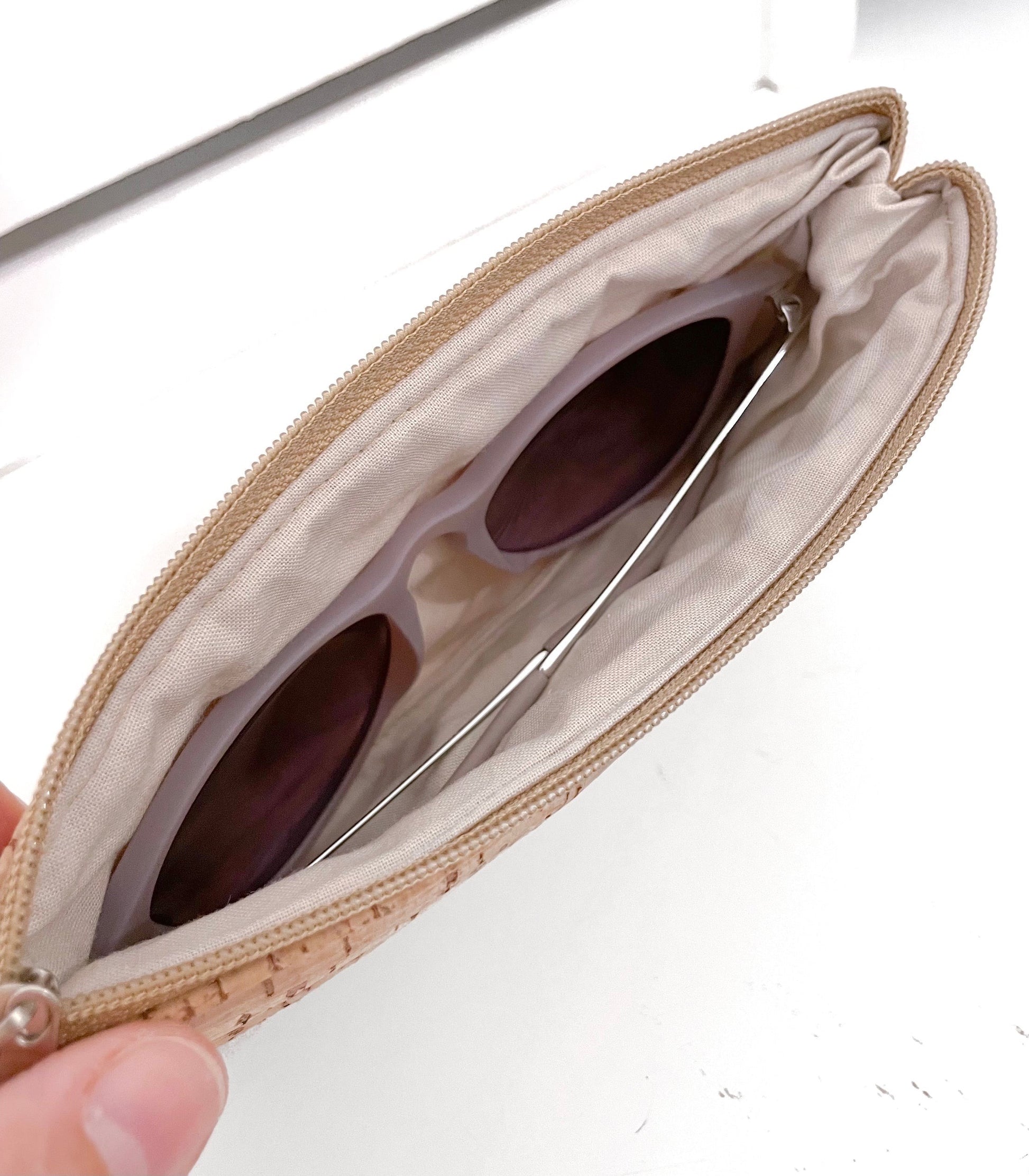 Portaocchiali da sole o da vista super originale. Realizzato in tessuto di cotone e sughero, interno foderato e morbidoso per proteggerne il contenuto. Il retro è interamente in sughero.
