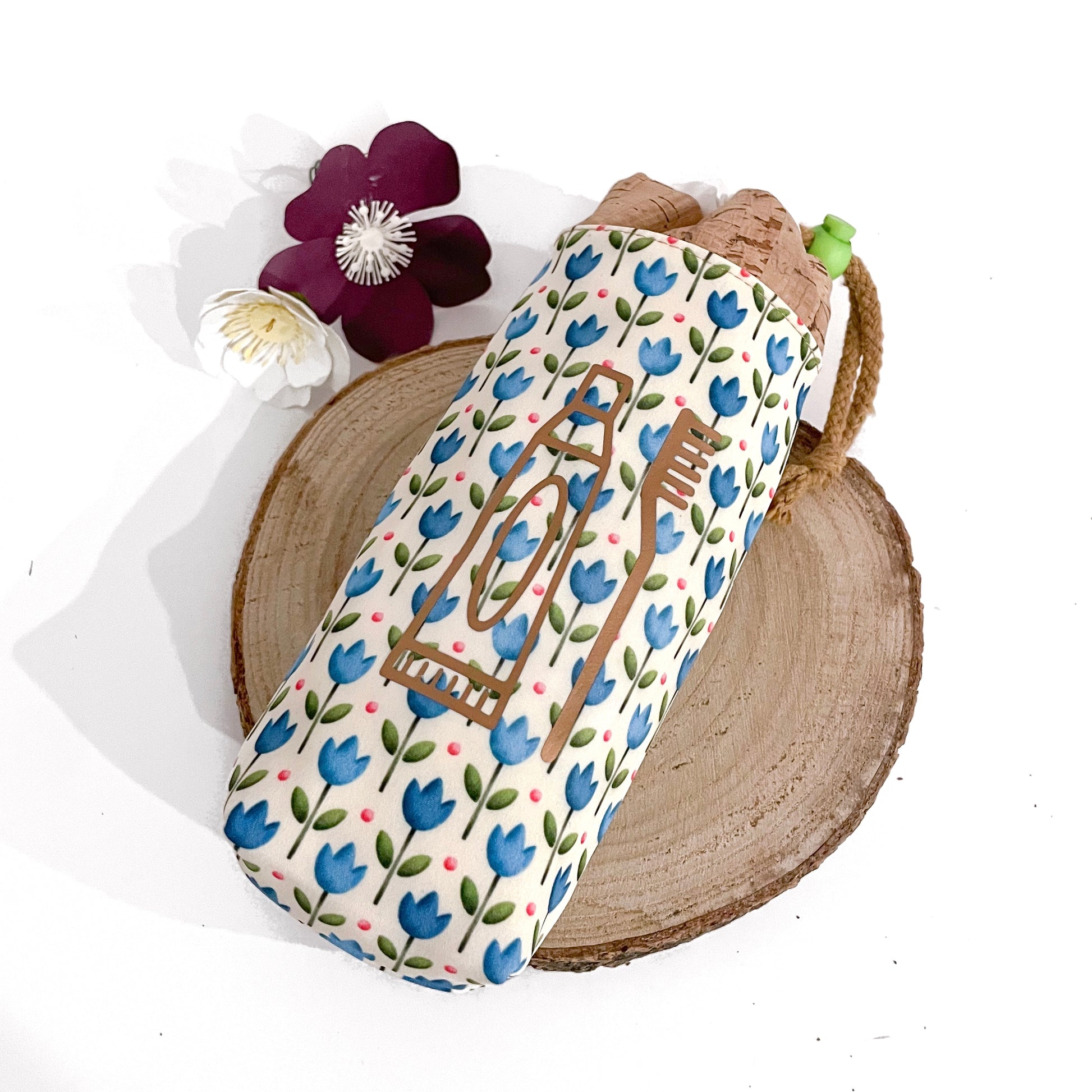 Portaspazzolino realizzato in tessuto idrorepellente e sughero. Tessuto idrorepellente anche per la fodera interna.