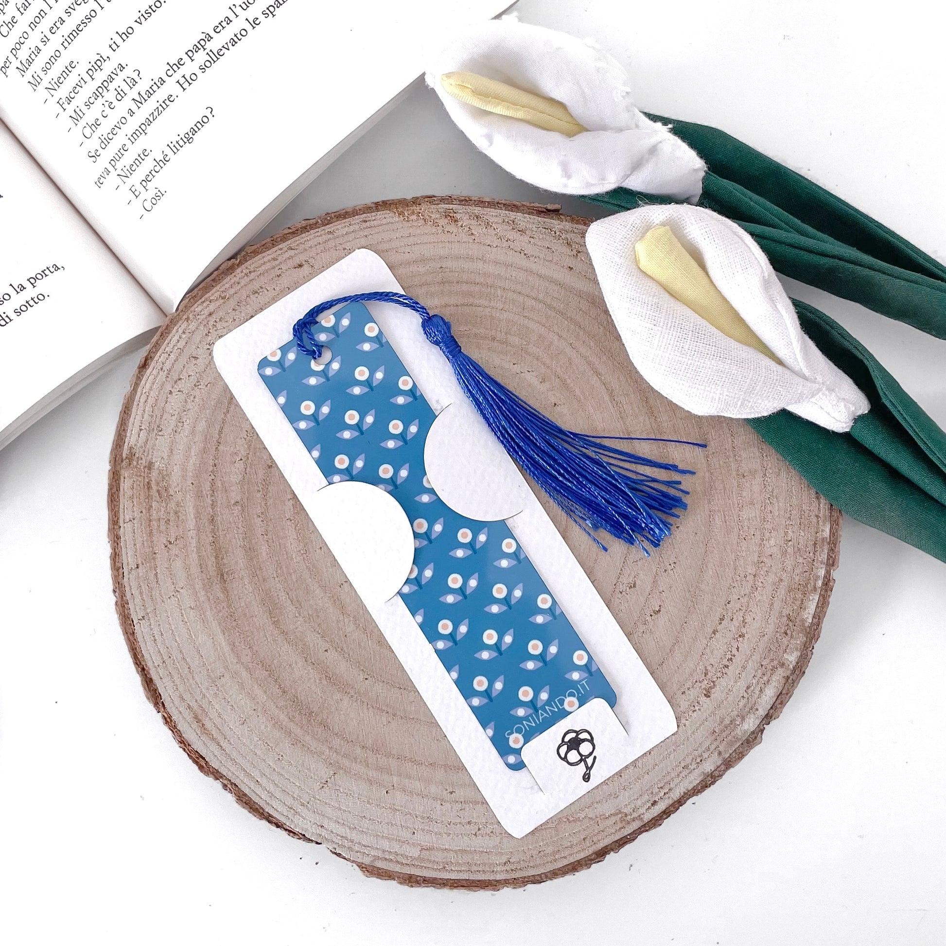 Segnalibro in alluminio con nappina colorata, perfetto da regalare ad adulti e ragazzi amanti della lettura.