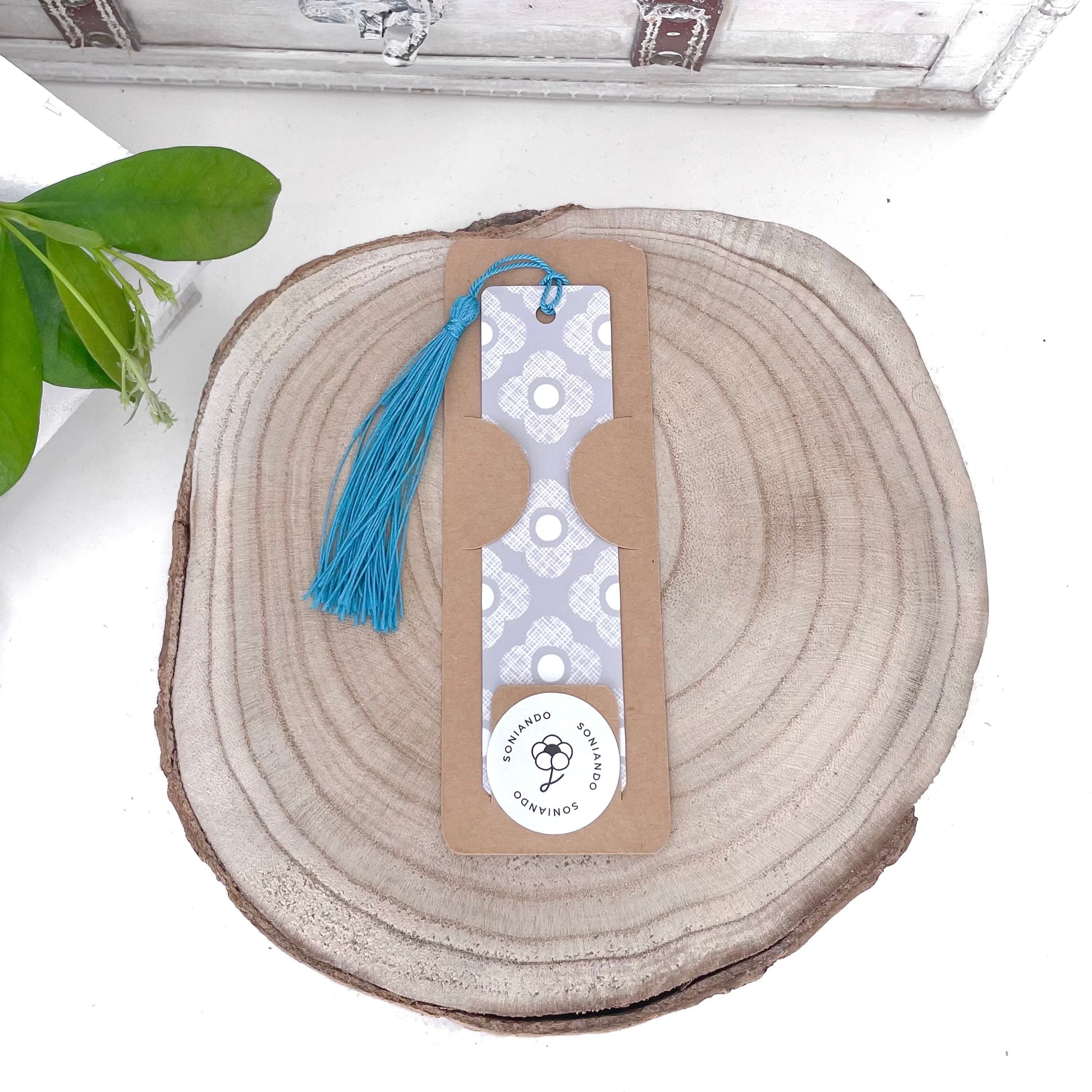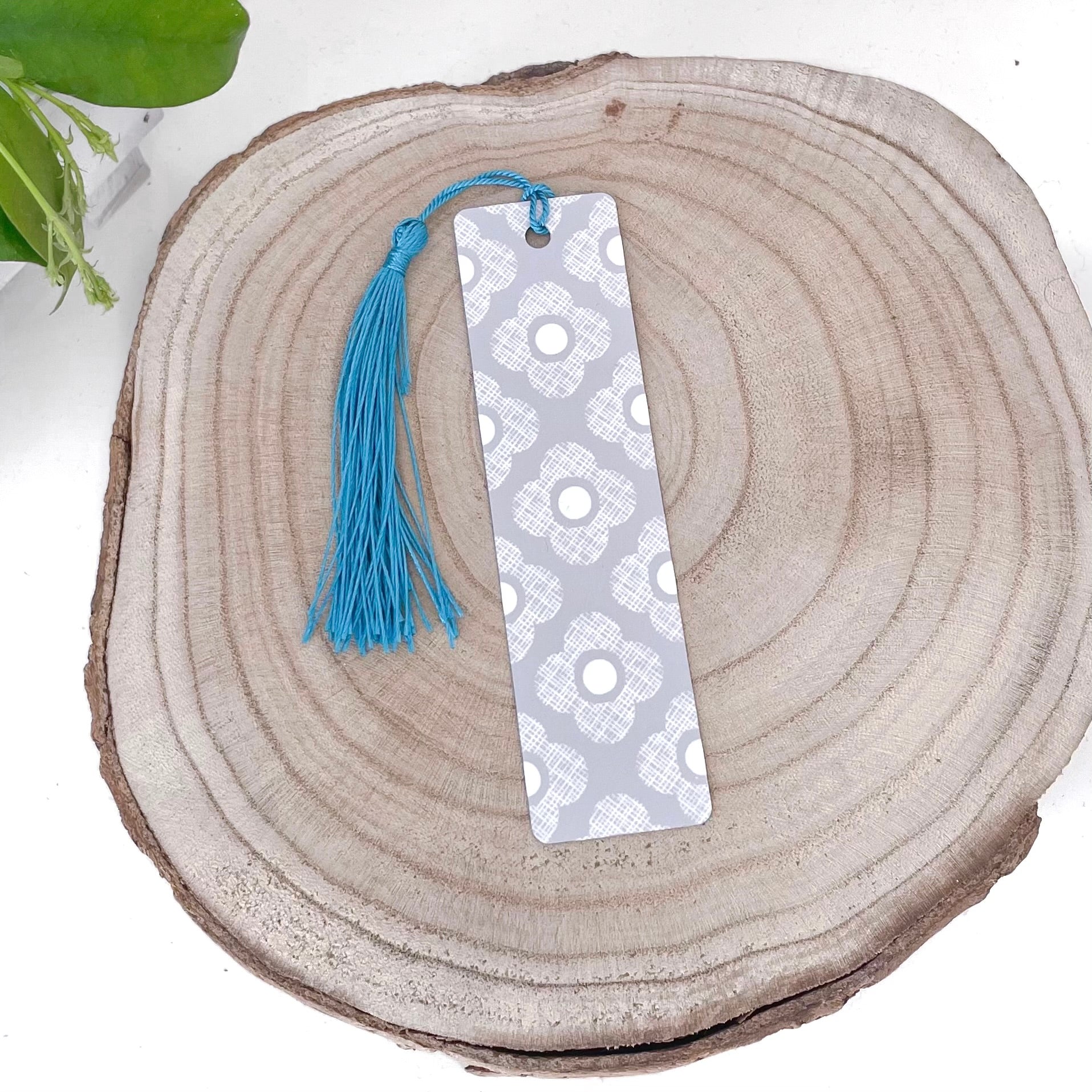 Segnalibro in alluminio con nappina colorata, perfetto da regalare ad adulti e ragazzi amanti della lettura.